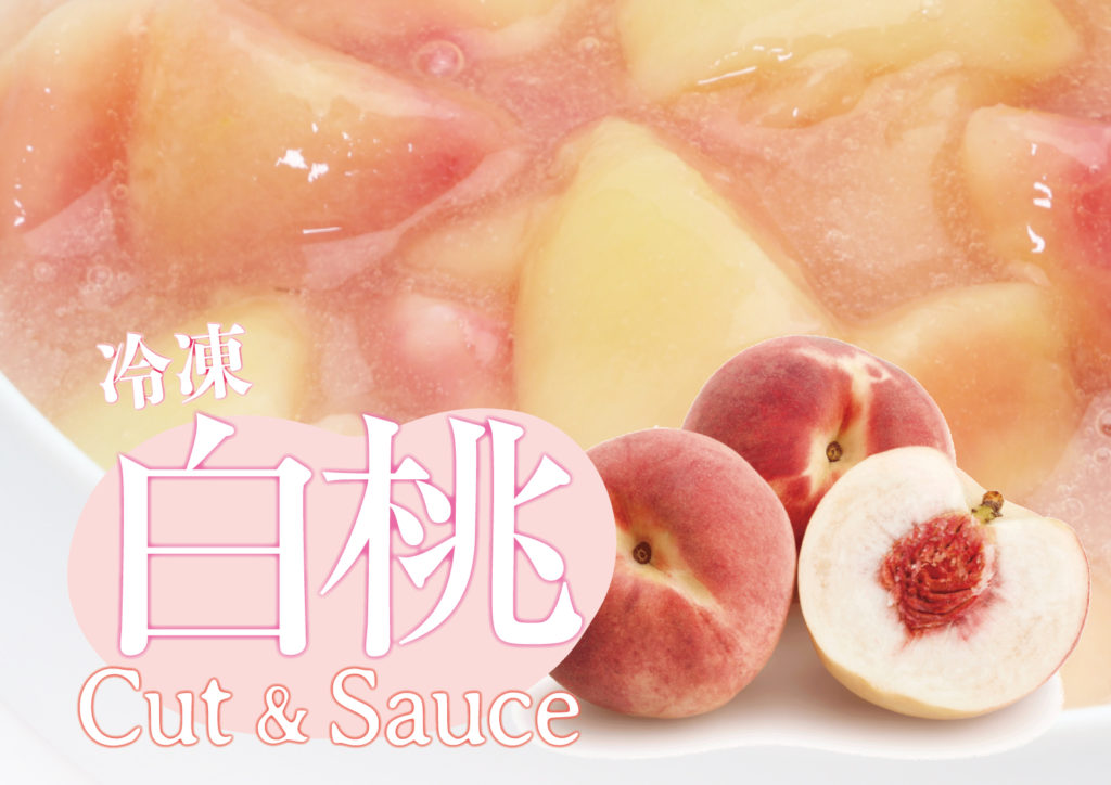 日本人が大好きな熟れた白桃を使った冷凍カットソースです。白桃のおいしさを手軽に楽しめる新たな冷凍フルーツソースシリーズです