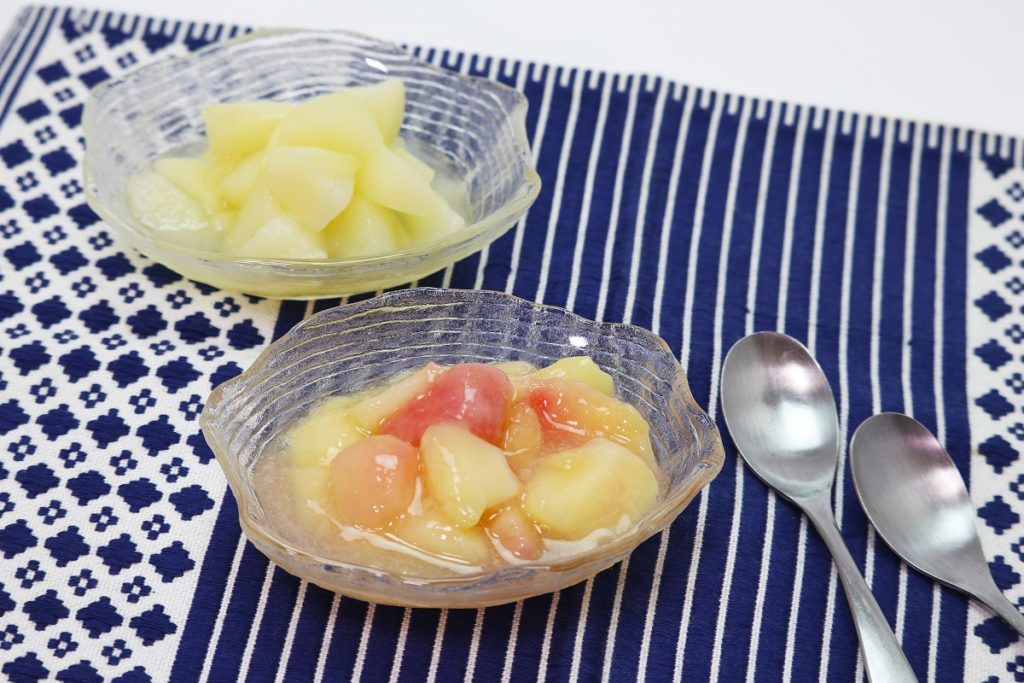 「とろみ」のある白桃カット&ソースの特性を介護食に