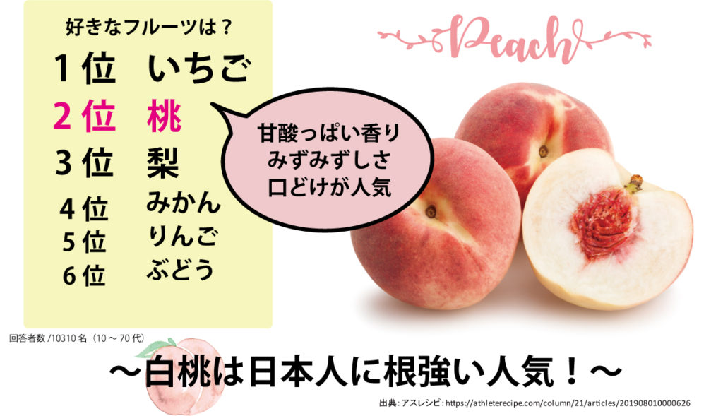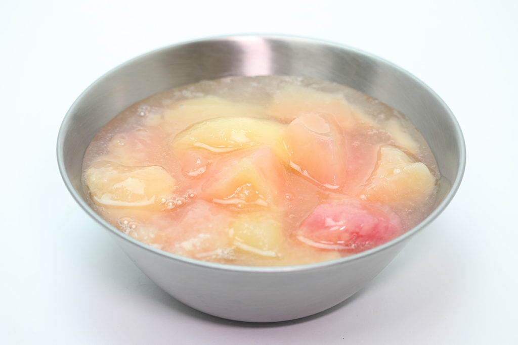 | 原材料 | 桃、ぶどう糖果糖液糖、砂糖、酸化防止剤(ビタミンC)、増粘剤(キサンタンガム、アルギン酸ナトリウム)、香料 | |