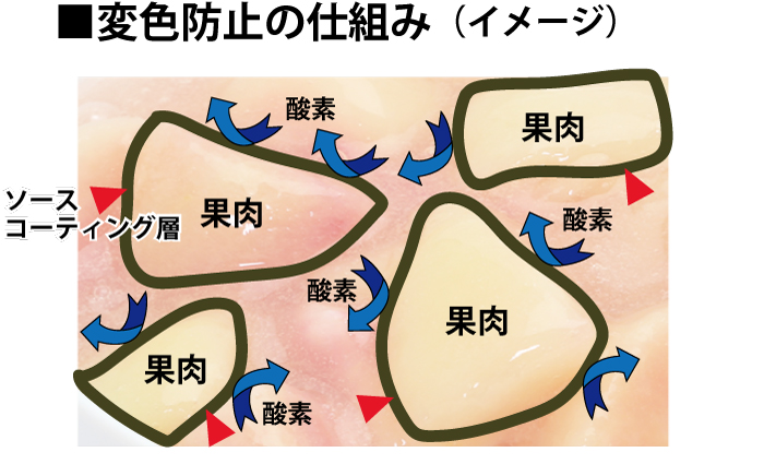 美しい白桃の色を保持するために当社独自の技術が使われています。