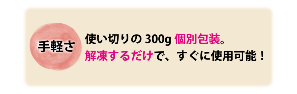 300gの個別包装になっていますので、いつでも無駄なく使用できます。