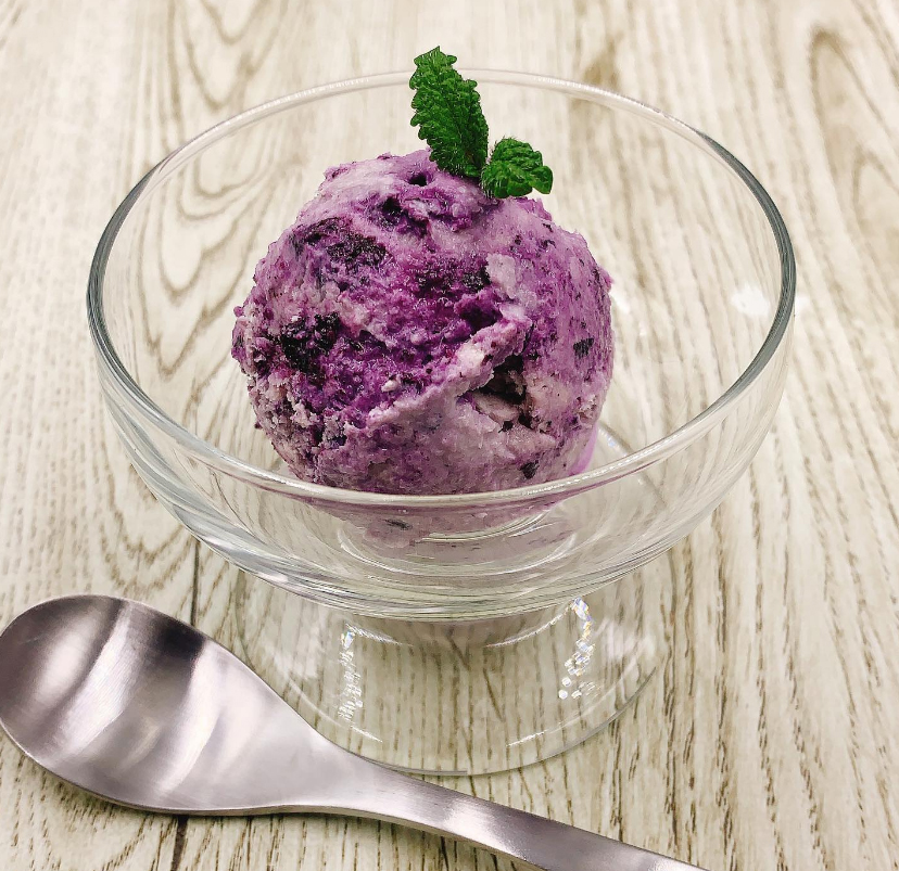 パープルカラーが鮮やかなアイスクリームを手軽に作る。