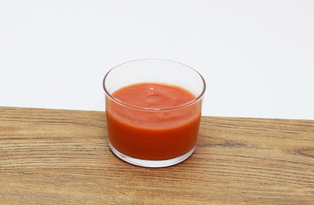 4.ミキサーでペースト状にする(果肉感を残したい場合は少なめに。固くて回りづらい時は水もしくはりんごジュースを追加)